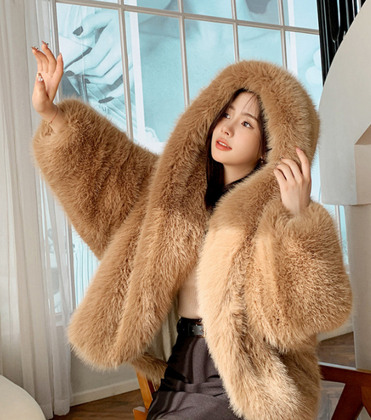 Hooded Faux Fur Jacke